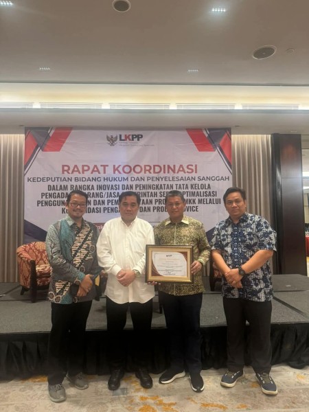 Penghargaan ini diserahkan Lembaga Kebijakan Pengadaan Barang/Jasa Pemerintah Republik Indonesia (LKPP RI) pada acara Rapat Koordinasi Kedeputian Bidang Hukum dan Penyelesaian Sanggah terkait Inovasi dan Peningkatan Tata Kelola Pengadaan Barang/Jasa Pemerintah serta Optimalisasi Penggunaan PDN dan Pemberdayaan Produk UMKK melalui Konsolidasi Pengadaan dan Probity Advice, di Hotel Grand Melia Jakarta, Senin, (9/12/2024).