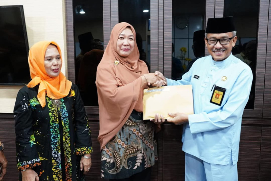 Diakhir acara Jefridin menyerahkan SK pensiun dan saguh hati kepada sembilan PNS yang purna tugas.(rilis)