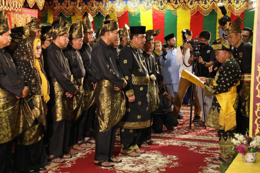Selain itu juga dilantunkan doa dan kemudian dilakukan prosesi pembawaan alat-alat kebesaran seperti Al-Qur’an, SK, selempang, tanjak, dan keris tabal.