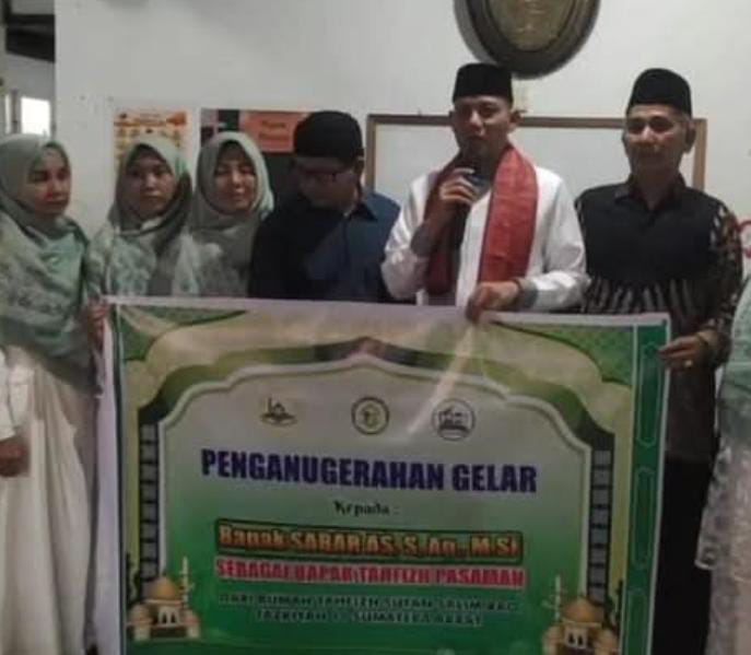 Rumah Tahfidz Al-Quran Sutan Salim Tazkiyah II Sumatera Barat, binaan Ustadz Jel Fathullah Anggota DPD RI memberi gelar Bapak Tahfidz kepada Sabar AS Bupati Pasaman. (Fauzi/transkepri.com)
