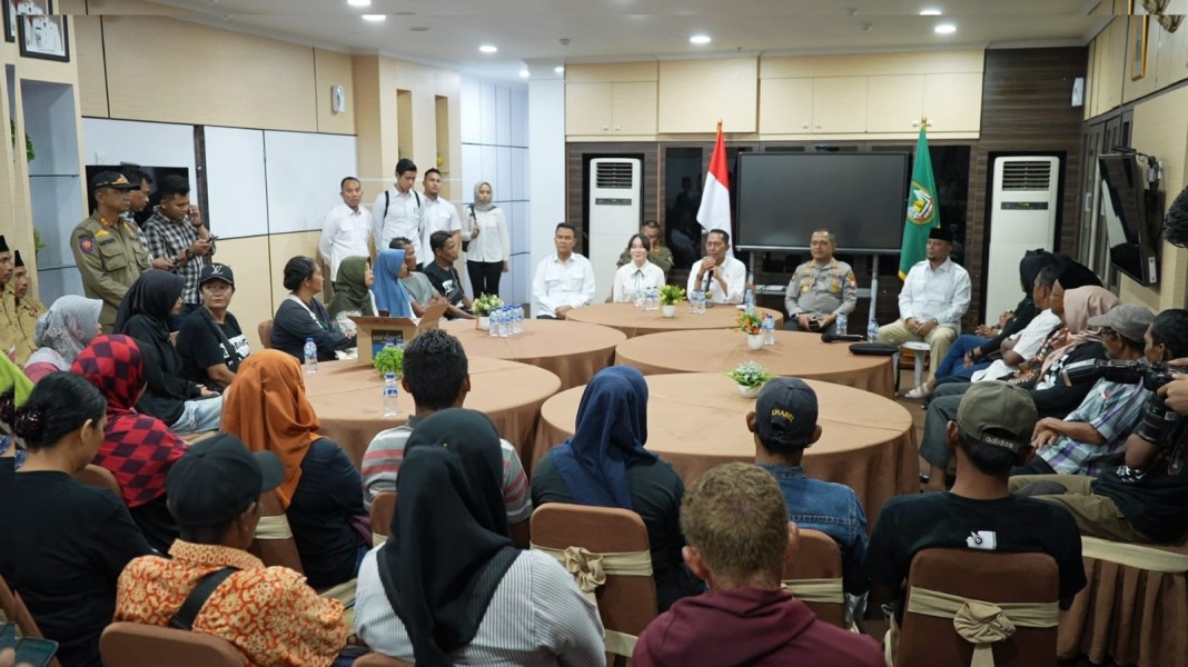 TRANSKEPRI.COM.BATAM - Kepala BP Batam, Amsakar Achmad, bersama Wakil Kepala BP Batam, Li Claudia Chandra, menerima audiensi warga Rempang terkait penertiban lahan di Tanjung Banon, Senin (5/5/2025).