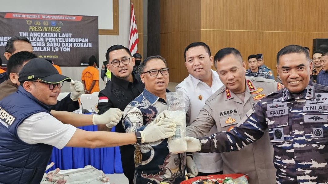 TRANSKEPRI.COM.BATAM- Wakil Gubernur Kepulauan Riau (Kepri), Nyanyang Haris Pratamura, hadir dalam press release mengenai penggagalan penyelundupan narkotika jenis sabu dan kokain seberat 1,9 ton yang dilakukan oleh TNI Angkatan Laut (AL). Kegiatan ini berlangsung di Mako Lantamal IV Batam, Tanjung Sengkuang, pada Jumat (16/05/25).