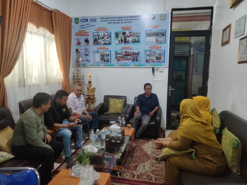 TRANSKEPRI.COM.BATAM- Dalam rangka menjalankan fungsi organisasi, Persatuan Wartawan Indonesia (PWI) Kota Batam melakukan kunjungan ke SMP Negeri 26 Kota Batam. Hal ini dilakukan menyusul adanya keluh kesah yang disampaikan kepada salah satu anggota PWI Batam terkait dugaan pemerasan yang dilakukan oleh sejumlah oknum wartawan yang sangat bertentangan dengan Kode Perilaku dan Kode Etik Jurnalistik.