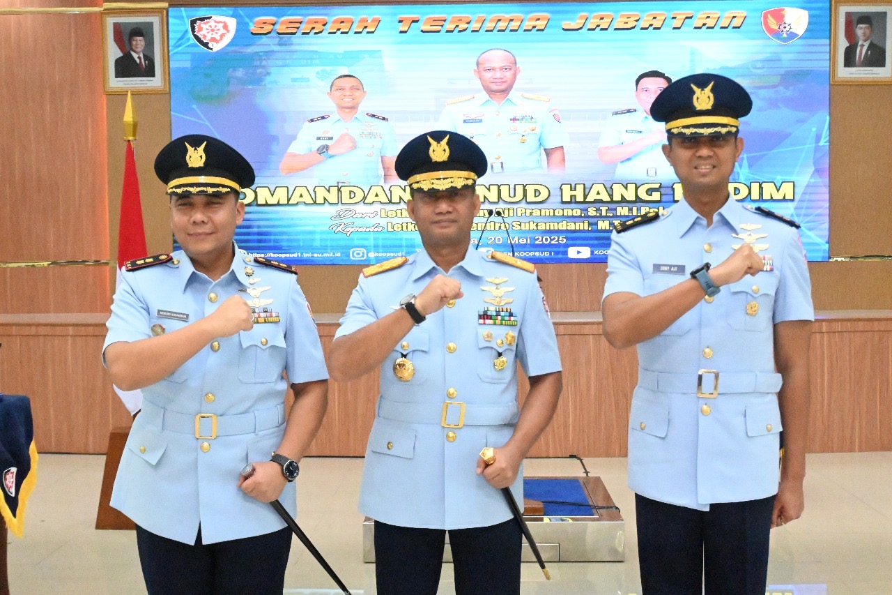 TRANSKEPRI.COM.JAKARTA1 Komando Operasi Udara I (Koopsud I) TNI Angkatan Udara menggelar upacara serah terima jabatan (Sertijab) Komandan Pangkalan TNI AU (Danlanud) Hang Nadim (HNM) Batam dari Letkol Pnb Sony Aji Pramono, S.T., M.I.Pol., kepada Letkol Pnb Hendro Sukamdani, M.Tr.Opsla. Acara ini berlangsung, Selasa (20/05/25) di Markas Koopsud I, Jakarta, dan dipimpin langsung oleh Pangkoopsud I, Marsma TNI Muzafar S.Sos., MM.