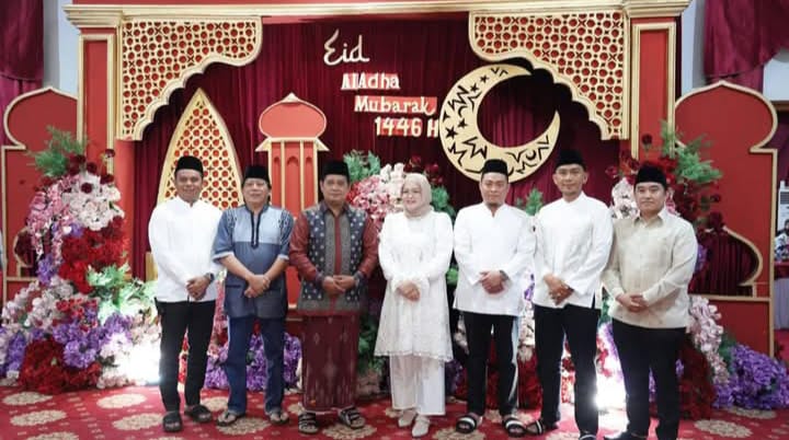 TRANSKEPRI COM BANYUASIN- Suasana penuh keakraban dan kekeluargaan mewarnai acara ramah tamah Pemerintah Kabupaten Banyuasin bersama jajaran Pemerintah dan masyarakat, semuanya hadir memenuhi undangan Bupati Banyuasin, Askolani usai pelaksanaan Shalat Idul Adha 1446 Hijriah, dalam rangka momentum memperingati Hari Raya Idul Adha 1446H yang bertujuan untuk menjalin tali silaturahmi bersama seluruh Satuan Kerja Perangkat Daerah (SKPD) serta jajaran di Pemkab Banyuasin digelar di Guest House Rumah Dinas Bupati Banyuasin, Jumat (6/6/2025).