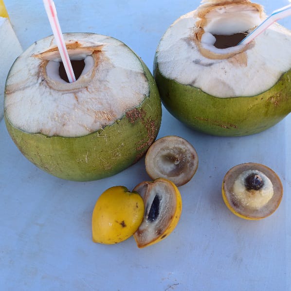 Secara rasa, buah abio memiliki kemiripan dengan sawo, namun lebih berserat dan sedikit bergetah, menjadikannya unik dibandingkan buah tropis lainnya. Sementara itu, kelapa pandan memiliki rasa air kelapa yang segar dengan aroma pandan alami, dan daging buahnya serupa dengan kelapa pada umumnya.