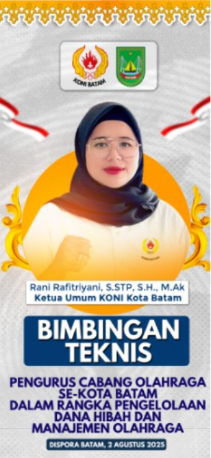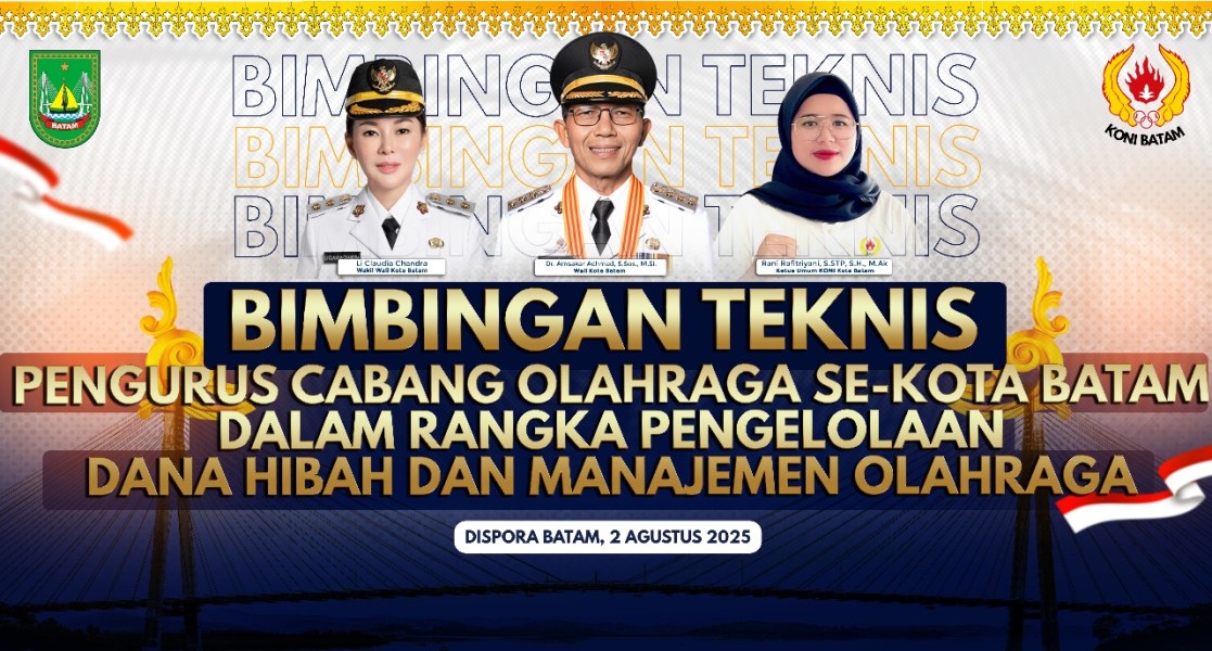 TRANSKEPRI.COM, BATAM – Komite Olahraga Nasional Indonesia (KONI) Kota Batam akan menggelar Bimbingan Teknis (Bimtek) bertajuk “Edukasi Bantuan Dana Hibah dan Manajemen Olahraga bagi Cabor” pada Sabtu, 2 Agustus 2025, yang akan dilaksanakan di Aula Dinas Pemuda dan Olahraga (Dispora) Kota Batam.