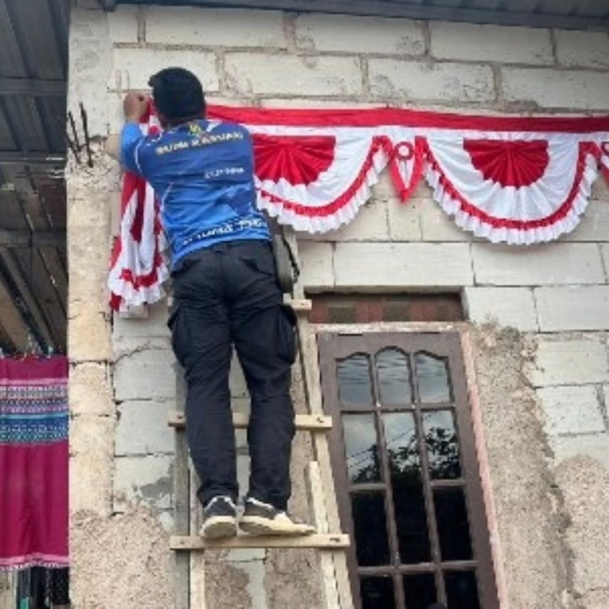 Serda Darmen Manik, salah satu anggota Satgas, tampak aktif memimpin koordinasi pemasangan atribut kemerdekaan di berbagai titik strategis di kawasan tersebut.