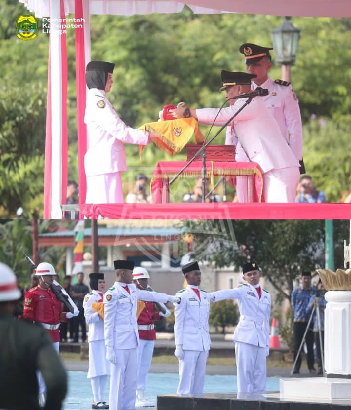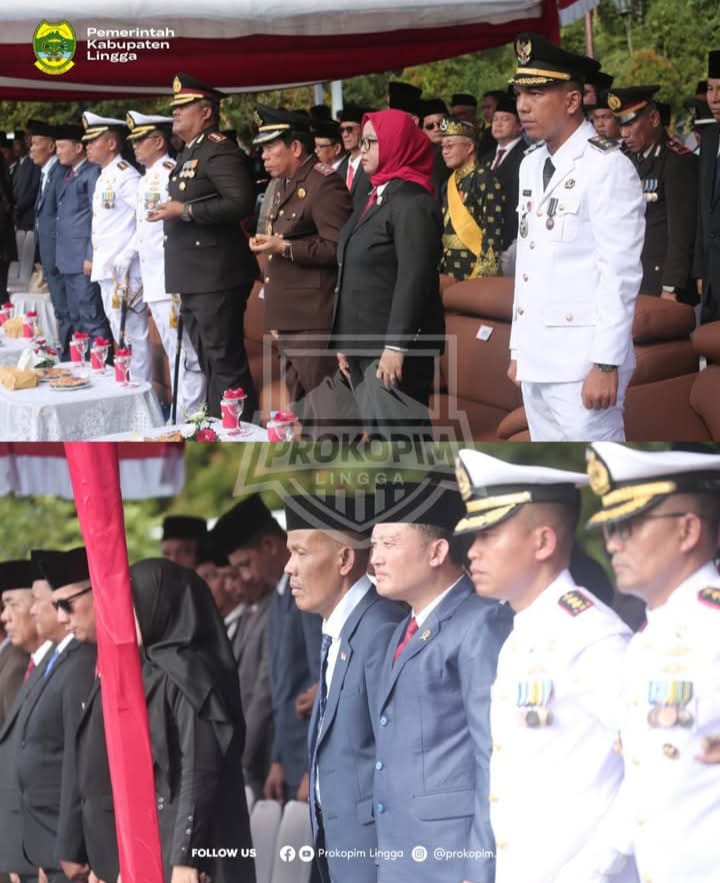 Upacara HUT RI ke-80 tahun ini mengusung tema “Bersatu, Berdaulat, Rakyat Sejahtera, Indonesia Maju.” Tema tersebut selaras dengan semangat pembangunan Kabupaten Lingga yang terus berfokus pada peningkatan kesejahteraan masyarakat, pendidikan, kesehatan, serta pembangunan infrastruktur yang merata di seluruh wilayah.