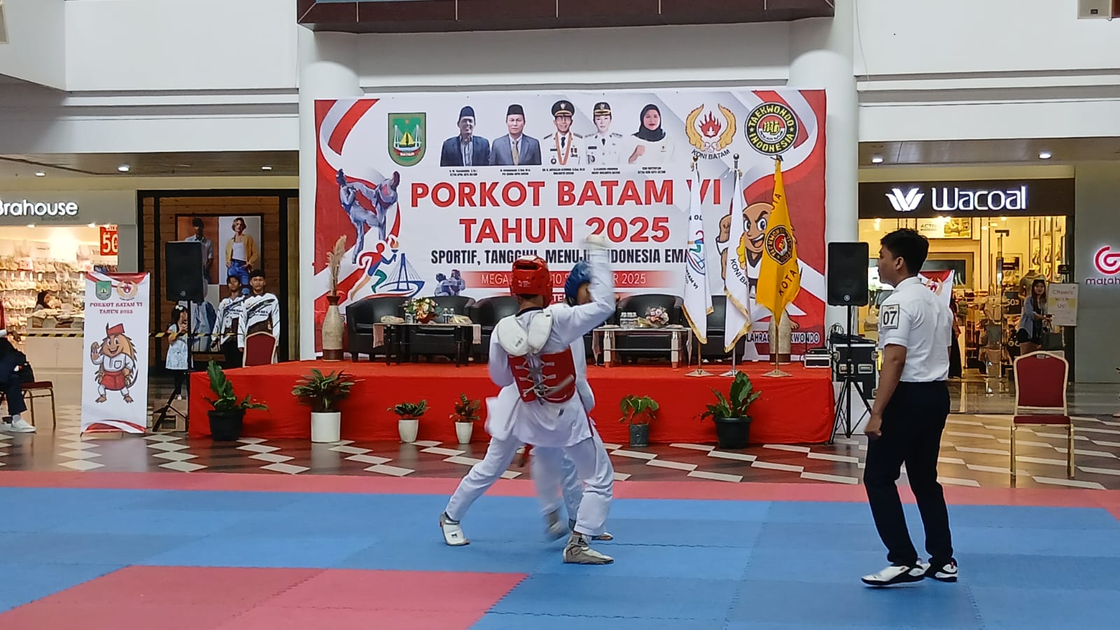 TRANSKEPRI.COM, BATAM – Cabang olahraga Taekwondo resmi menggelar pertandingan pada Pekan Olahraga Kota (PORKOT) Batam VI Tahun 2025. Sebanyak 97 atlet terbaik, baik putra maupun putri, dari 9 kecamatan siap bertarung di 18 kelas yang dipertandingkan. Dari jumlah tersebut, 17 kelas masuk kategori kyorugi dan 1 kelas poomsae. Atrium Mega Mall, Selasa 09/09/2025.