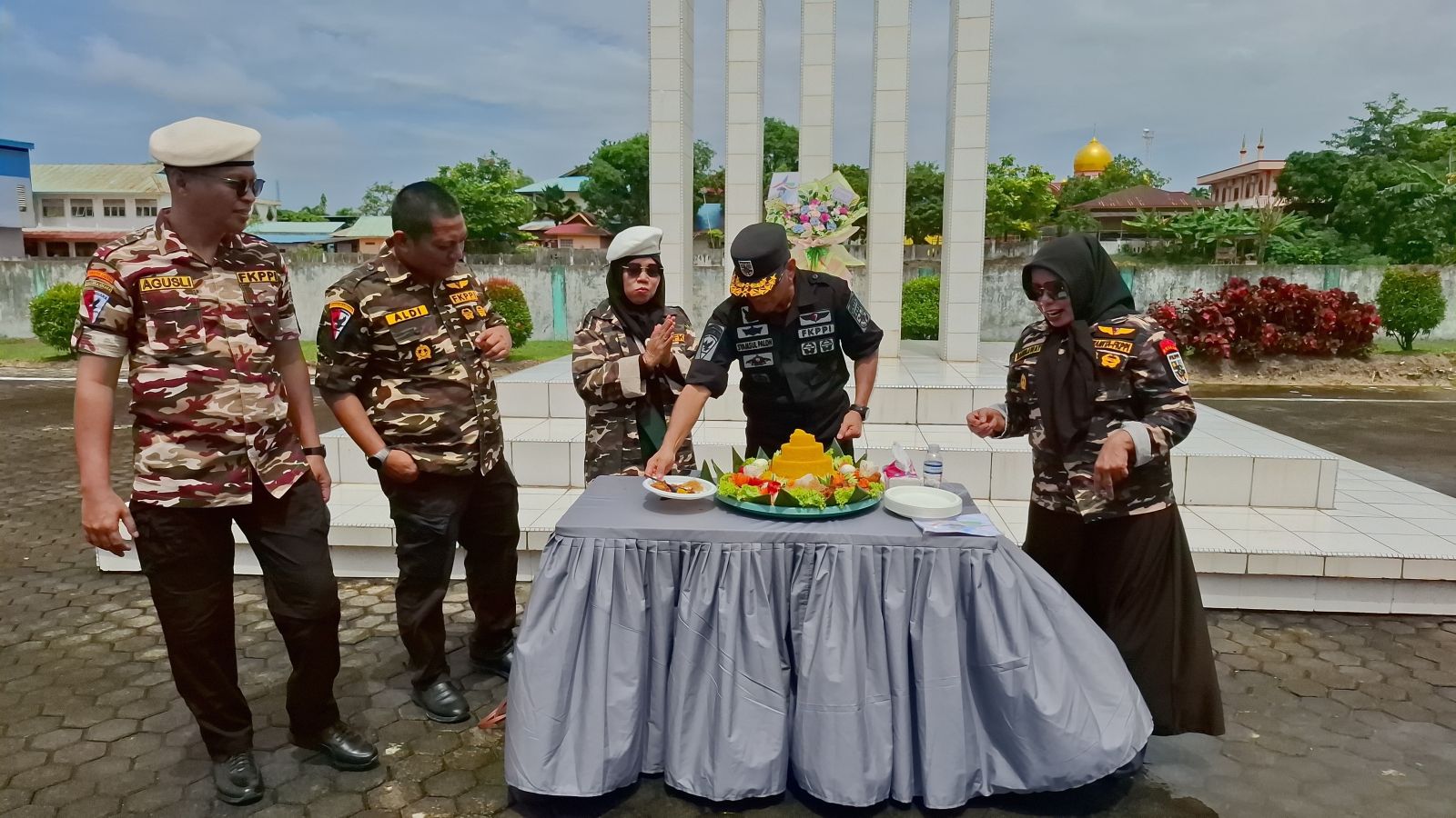 WANHAT FKPPI Kepri, Syamsul Paloh memotong tumpeng dan menyerahkan pada kader tertua. (ist)