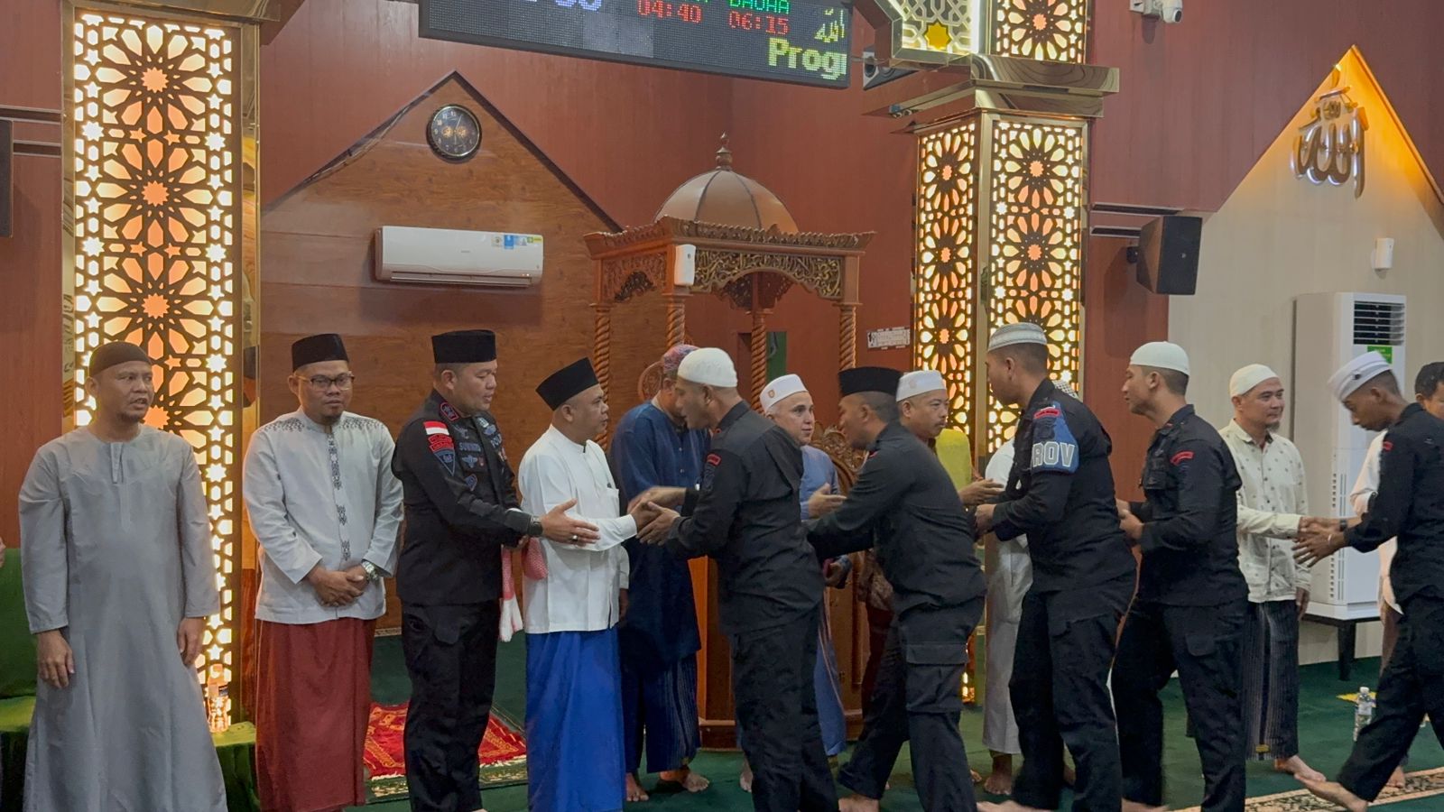 Kegiatan Sambang Ibadah Subuh Berjamaah ditutup dengan doa bersama dan silaturahmi antara personel Brimob Kepri dan warga sekitar.