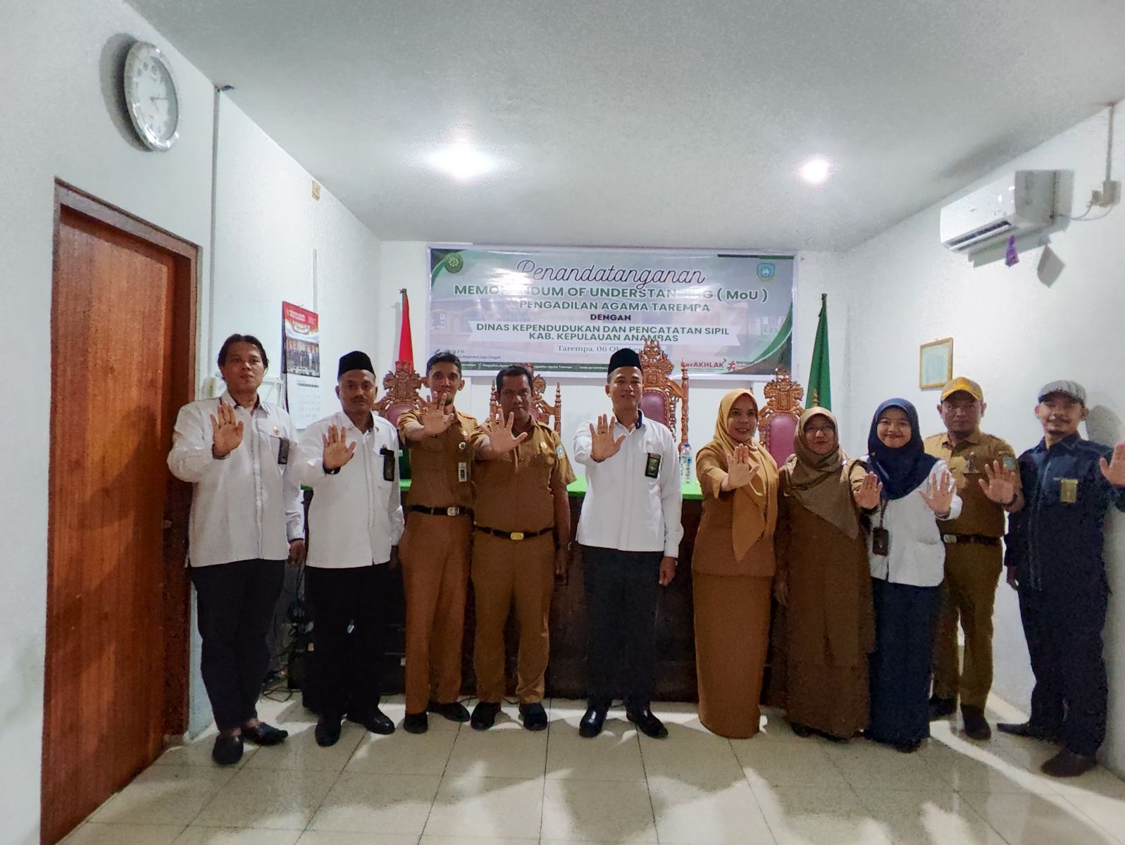 Disdukcapil Anambas melakukan MoU dengan Pengadilan Agama Tarempa di Aula Sidang, Kantor Pengadilan Agama, Senin (6/10/2025). (ist)