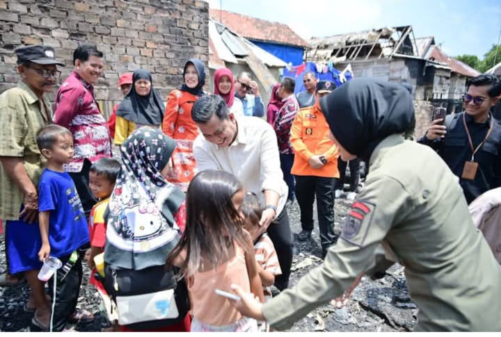 Bupati Banyuasin, Dr. H. Askolani, S.H., M.H., turun langsung meninjau lokasi kebakaran pada Rabu (9/10/2025) bersama jajaran pemerintah daerah untuk memastikan penanganan dan bantuan bagi warga terdampak berjalan optimal.