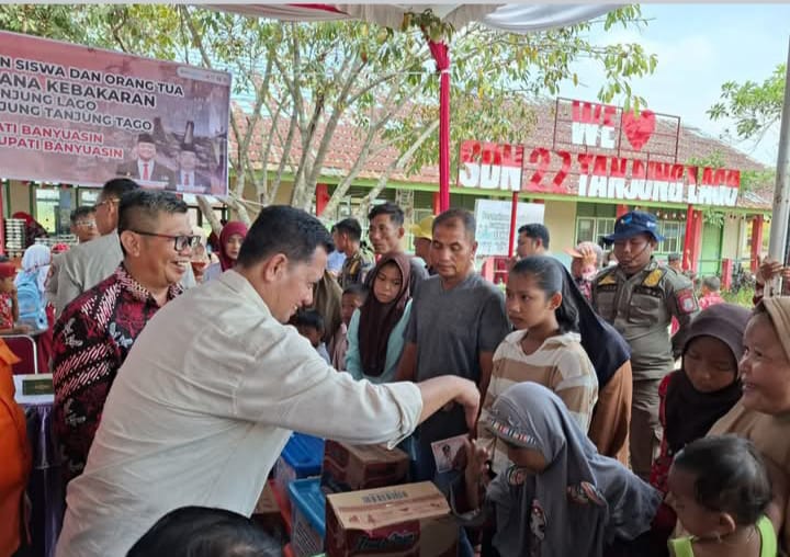 Kepala Dinas Pendidikan dan Kebudayaan Banyuasin, Aminuddin, S.Pd., S.IP., M.M., mengatakan bahwa pemberian buku tulis secara simbolis dilakukan langsung oleh Bupati Askolani di lokasi kebakaran Desa Tanjung Lago.