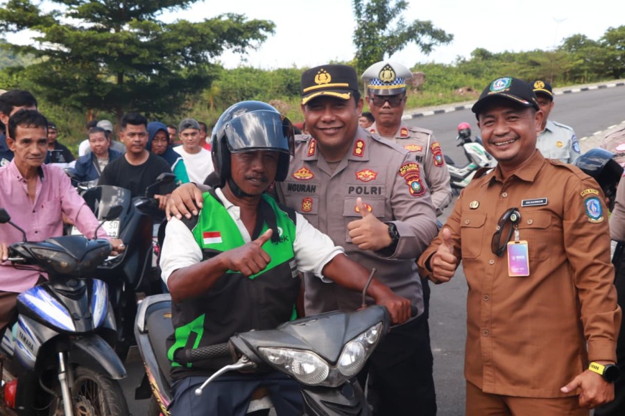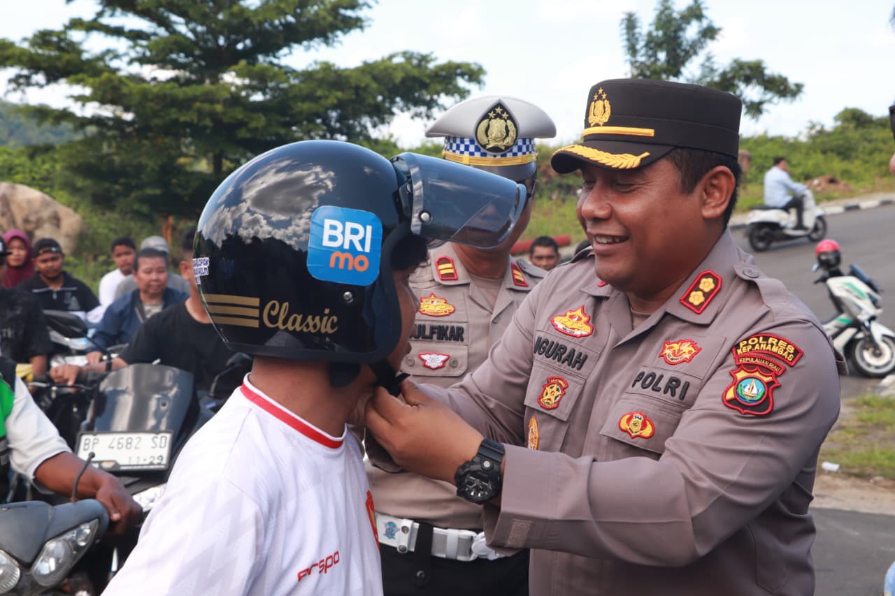 Di antara hiruk-pikuk kendaraan yang melintas, sejumlah pengendara terlihat tersenyum saat menerima helm gratis langsung dari tangan Kapolres Kepulauan Anambas AKBP I Gusti Ngurah Agung Budianaloka, S.I.K., M.H.