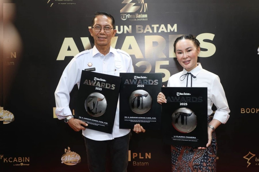 Penghargaan itu diterima Amsakar dan Li Claudia dalam ajang Tribun Batam Awards 2025 yang digelar di Kantor Tribun Batam, Batuampar, Senin (27/10/2025). Acara penghargaan tahunan ini diberikan kepada tokoh-tokoh yang dinilai memiliki kontribusi besar terhadap kemajuan Kota Batam di berbagai sektor. (rilis)