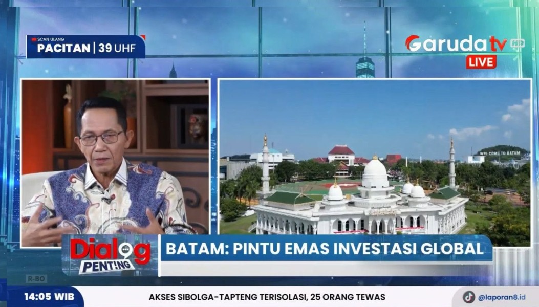 TRANSKEPRI.COM.BATAM - Batam terus memperkuat diri sebagai pusat investasi nasional yang terhubung dengan pasar dunia. Hal tersebut disampaikan Wali Kota sekaligus Kepala Badan Pengusahaan (BP) Batam, Amsakar Achmad, dalam program Dialog Penting di GarudaTV yang menyoroti kemajuan pesat ekosistem investasi di Kota Batam.