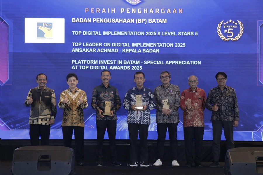 Adapun ketiga penghargaan tersebut yakni, Top Digital dengan bintang 5 dan Spesial Recognition yang diraih BP Batam, serta Top Leader on Digital Implementation 2025 yang diraih Kepala BP Batam, Amsakar Achmad.