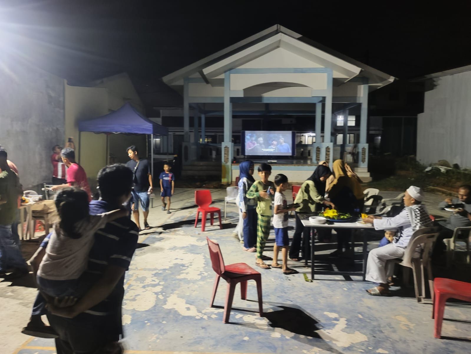 Di sudut lain Fasum Biru, keceriaan terus mengalir. Para ibu menikmati film layar lebar dan karaoke, sementara anak-anak menyalakan kembang api kecil yang berkilauan di tangan mereka. Tawa pecah, cerita bersambung, dan malam terasa hidup oleh kebahagiaan sederhana.
