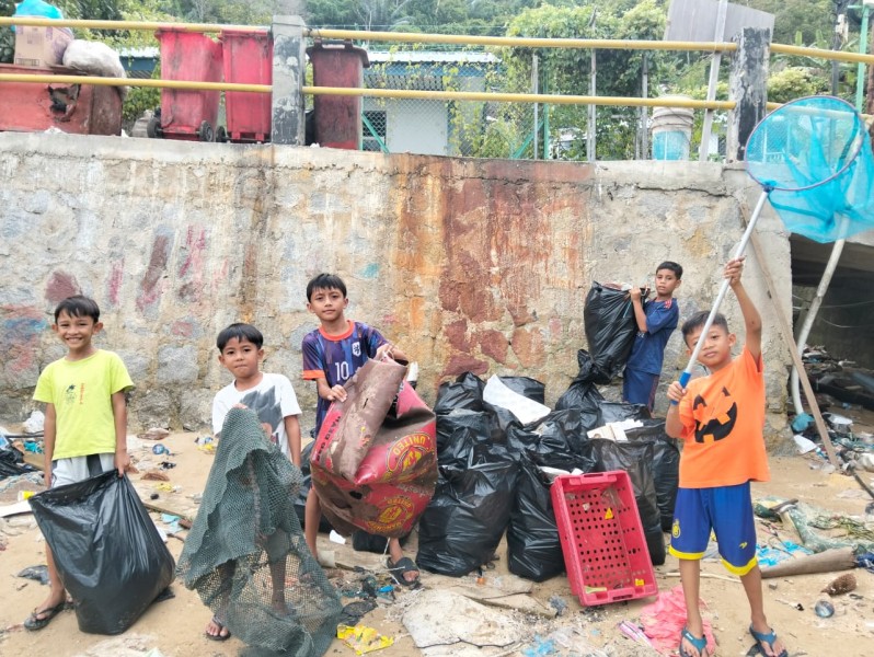 “Anak-anak itu datang dengan kesadaran sendiri. Mereka langsung membantu mengumpulkan sampah plastik di laut. Ini sangat luar biasa dan patut diapresiasi,” ujar Arpandi.
