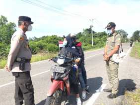 Polsek dan Satpol PP di Meranti Bagikan Masker ke Pengendara