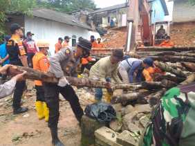 Polri, TNI dan FKPD Bersihkan Rumah Warga Tertimpa Longsor