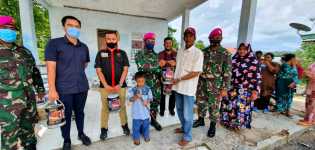 CV NKA dan Marinir Sumbangkan Cat ke Warga Teluk Air Setokok